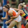 Erin McKinnon of the Giants tackled by Erin Phillips of the Crows. (Photo by AFL Media) Young GIANTS ruck Erin McKinnon has been recognised for a stand-out performance with a NAB AFL Women’s Rising Star nomination in round three. The…